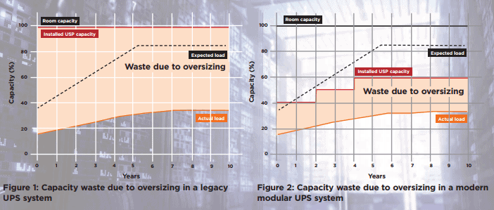 The UPS capacity originally provided needs only to exceed the actual load slightly, because it can be increased so easily, and incrementally, as and when the load grows.