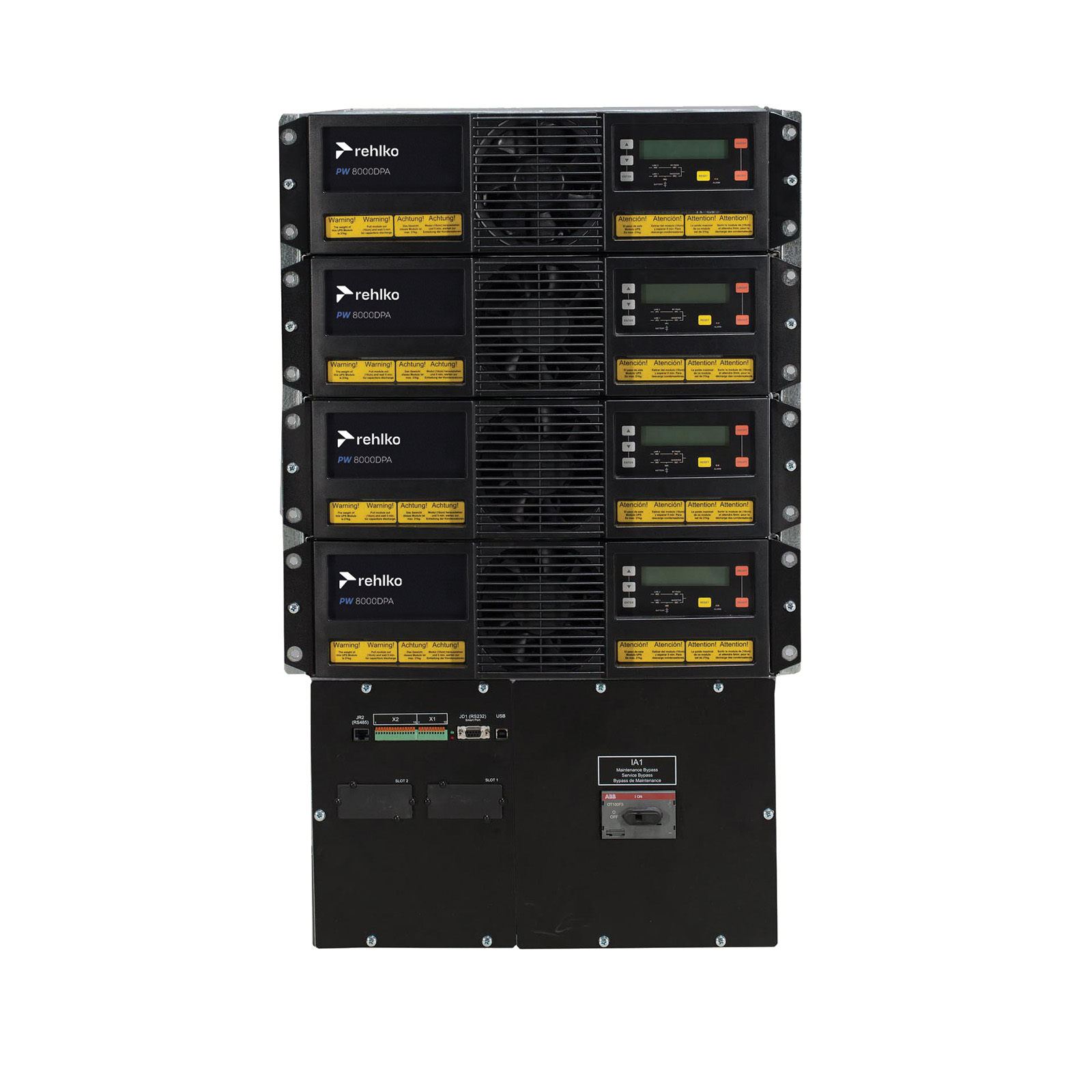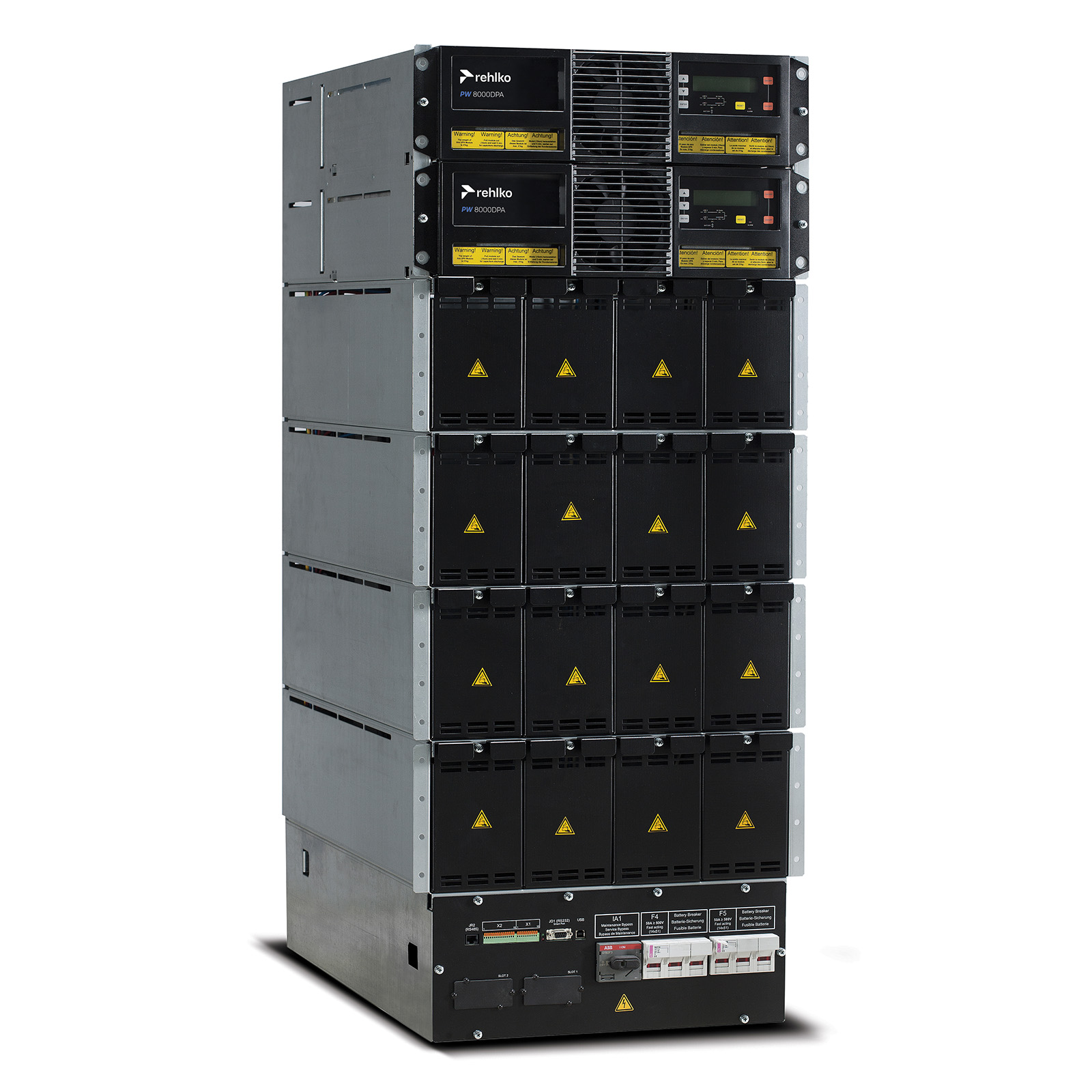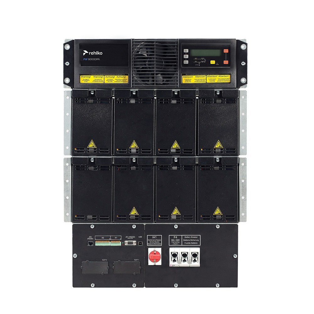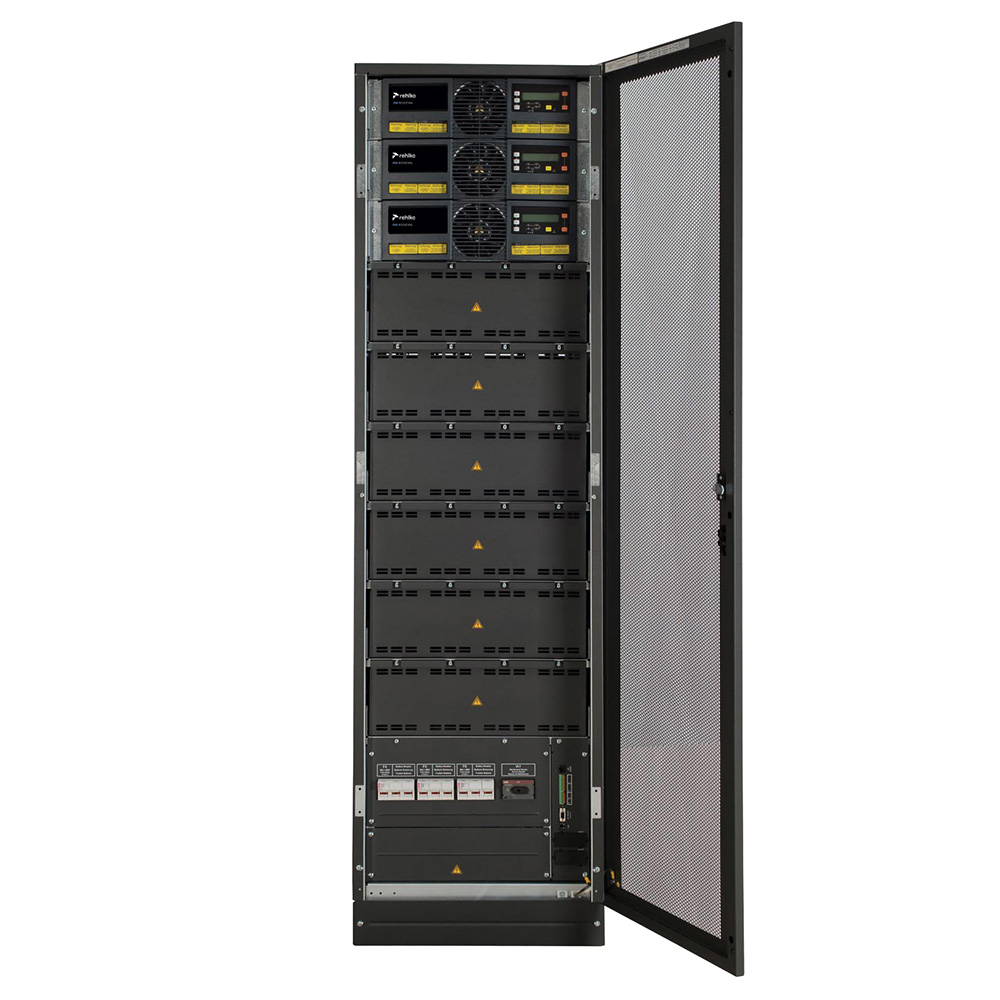 Tower solution for high density applications requiring power from 10kVA to 200kVA. 19” rack-mountable solution for integrated IT or telecom applications, providing up to 80kVA. Parallelable horizontally up to 400 kW